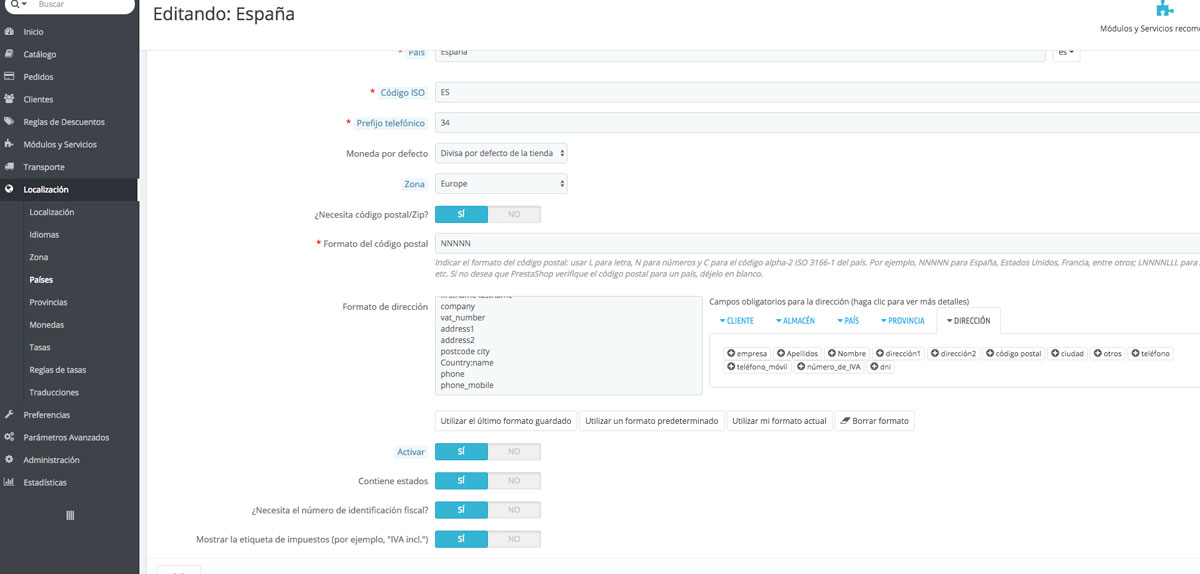 • Busca el país de tu tienda y pulsa el botón de modificar
