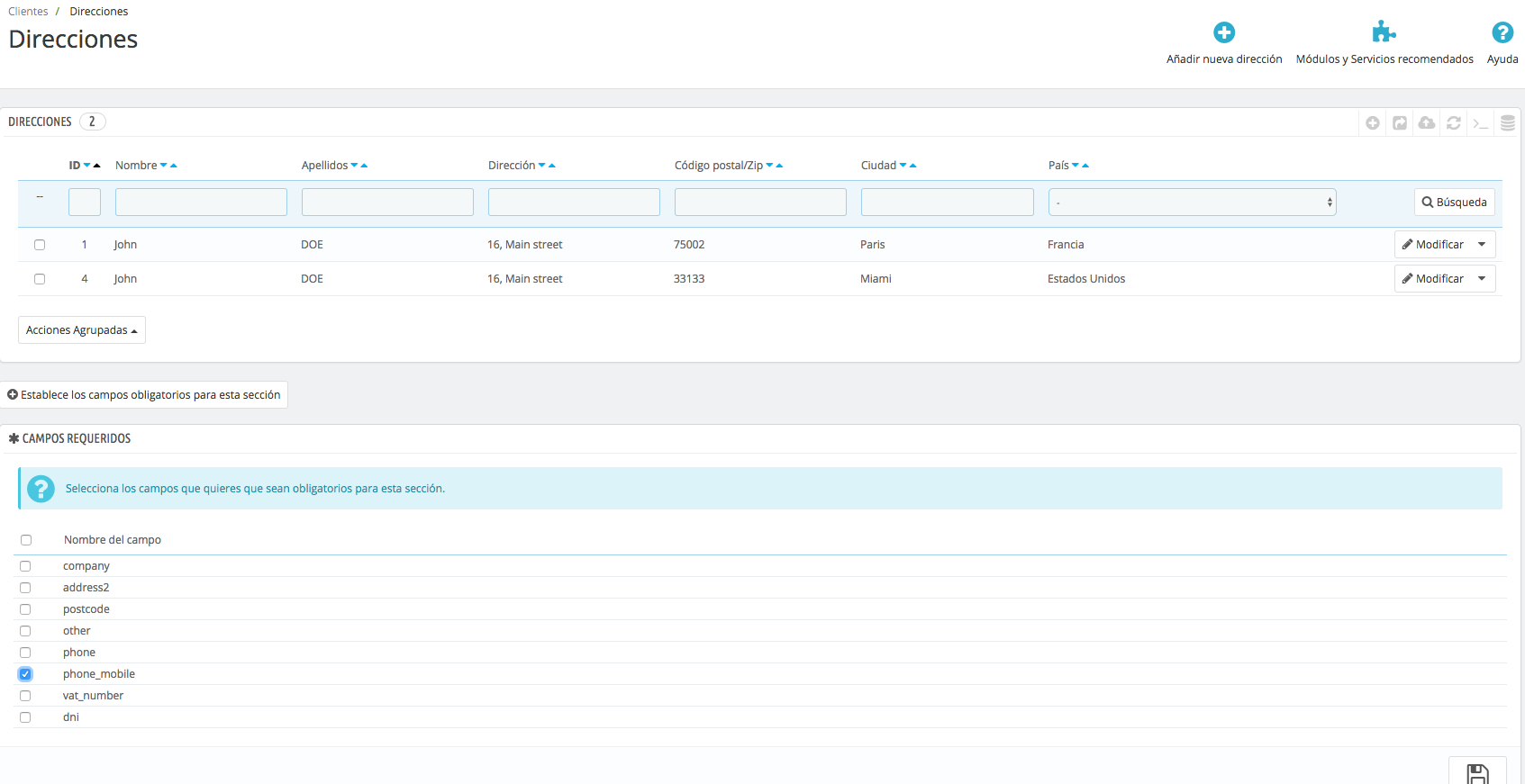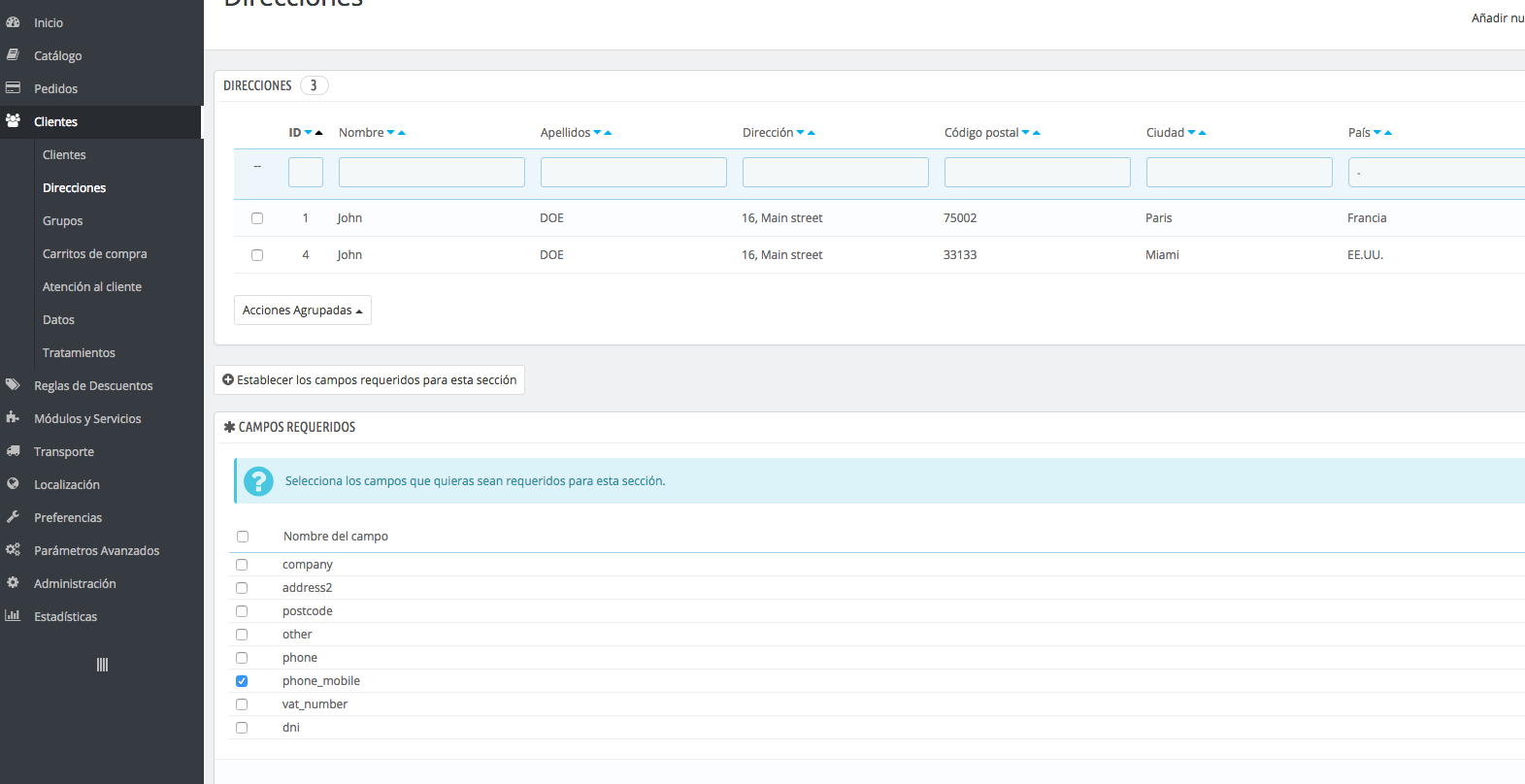 Habilitar teléfono móvil y hacerlo obligatorio en direcciones de envío en Prestashop
