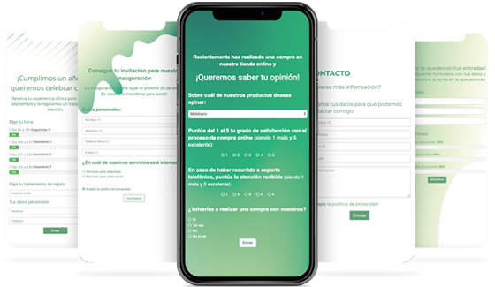 Conoce la opinión de tus clientes o capta leads. Crea tus propios formularios y encuestas con nuestro sencillo editor y añádelos a tu email mediante un enlace.